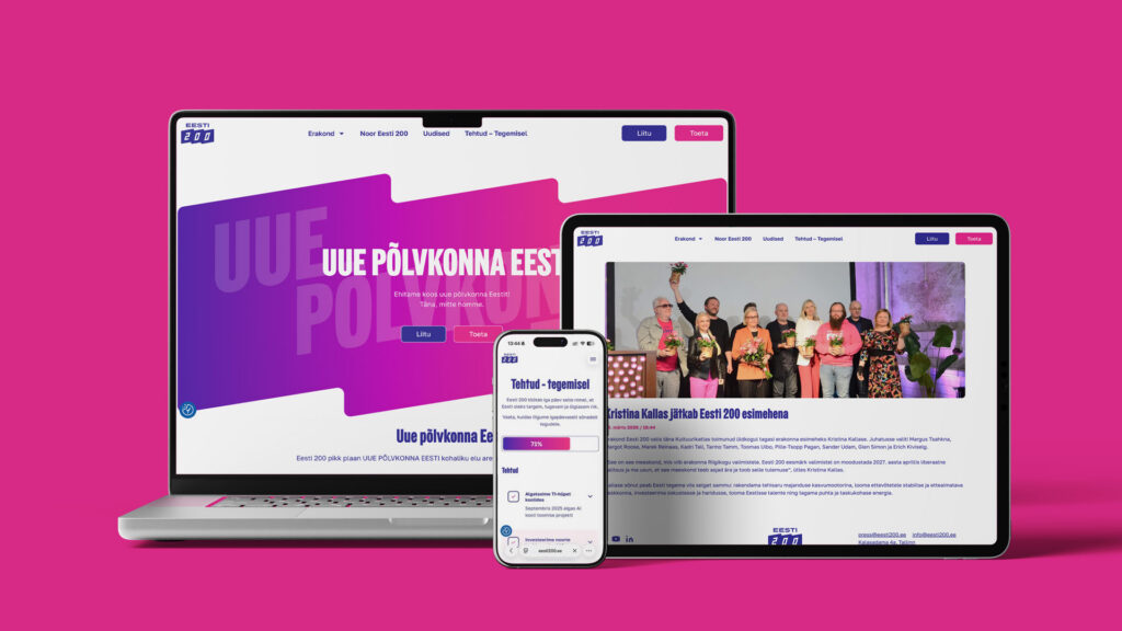 Eesti 200 Kaasaegne platvorm uuepõlvkonna poliitikale Eesti 200 veebileht koondab ühte kohta kogu erakonna info: valimisprogrammid, värsked uudised ja liikmete seisukohad. See on selge ja visuaalselt puhas keskkond, mis annab külastajale kiire ülevaate erakonna tegevusest ja tulevikuplaanidest. Vaata veebilehte Eesti200.ee on näide sellest, kuidas dünaamiline veebilahendus toetab kaasaegset poliitilist kommunikatsiooni. Meie eesmärk oli luua keskkond, […]