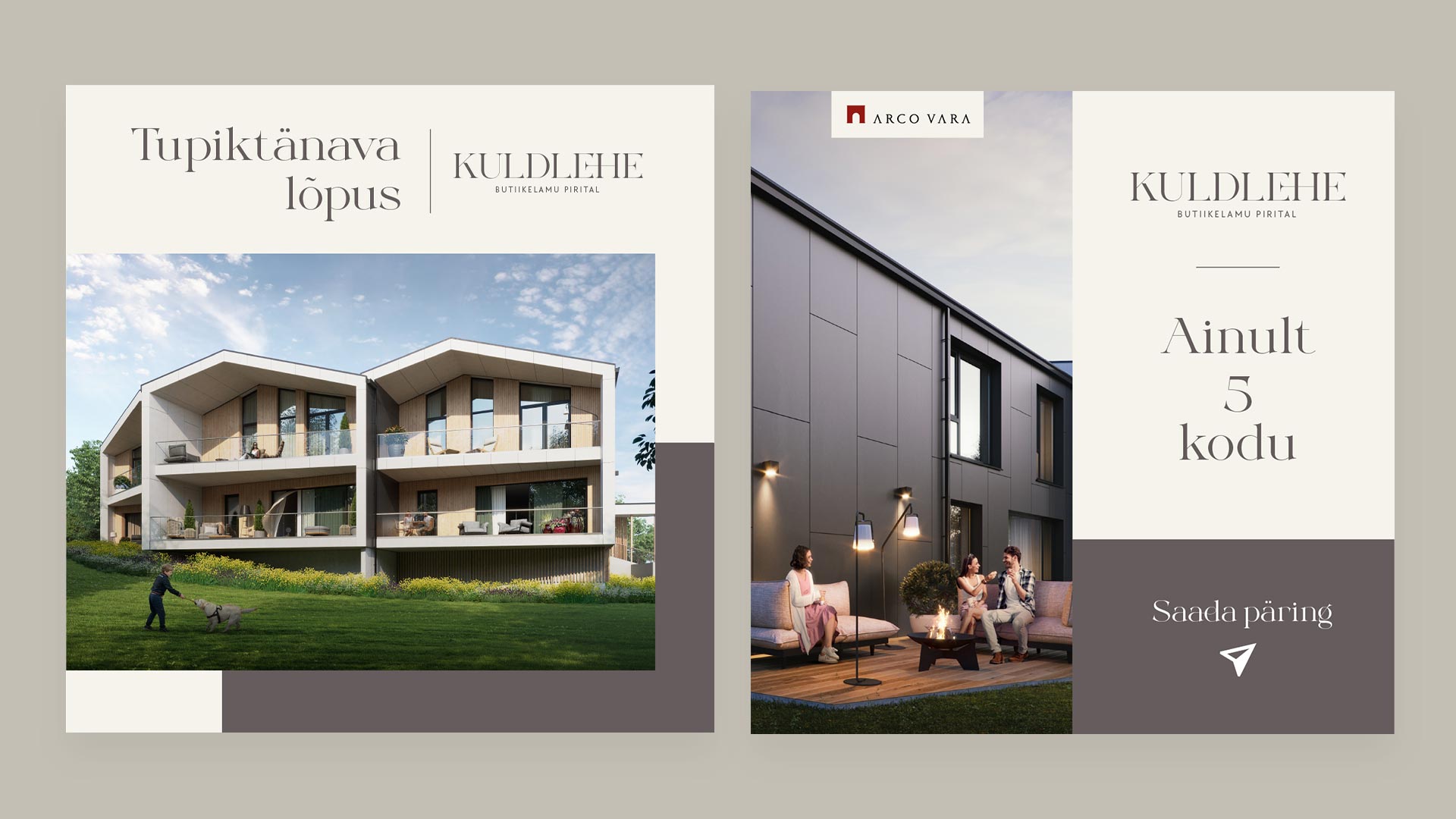 Tegime Arco Vara Kuldlehe arendusele bännerite seeria, mis peegeldab butiikelamute privaatsust ja luksuslikku elustiili. Visuaalne keel on inspireeritud Pirita männitukast ja mere lähedusest, pakkudes potentsiaalsele koduostjale rahustavat ja esteetiliselt puhast vaadet tema tulevasele elukeskkonnale.